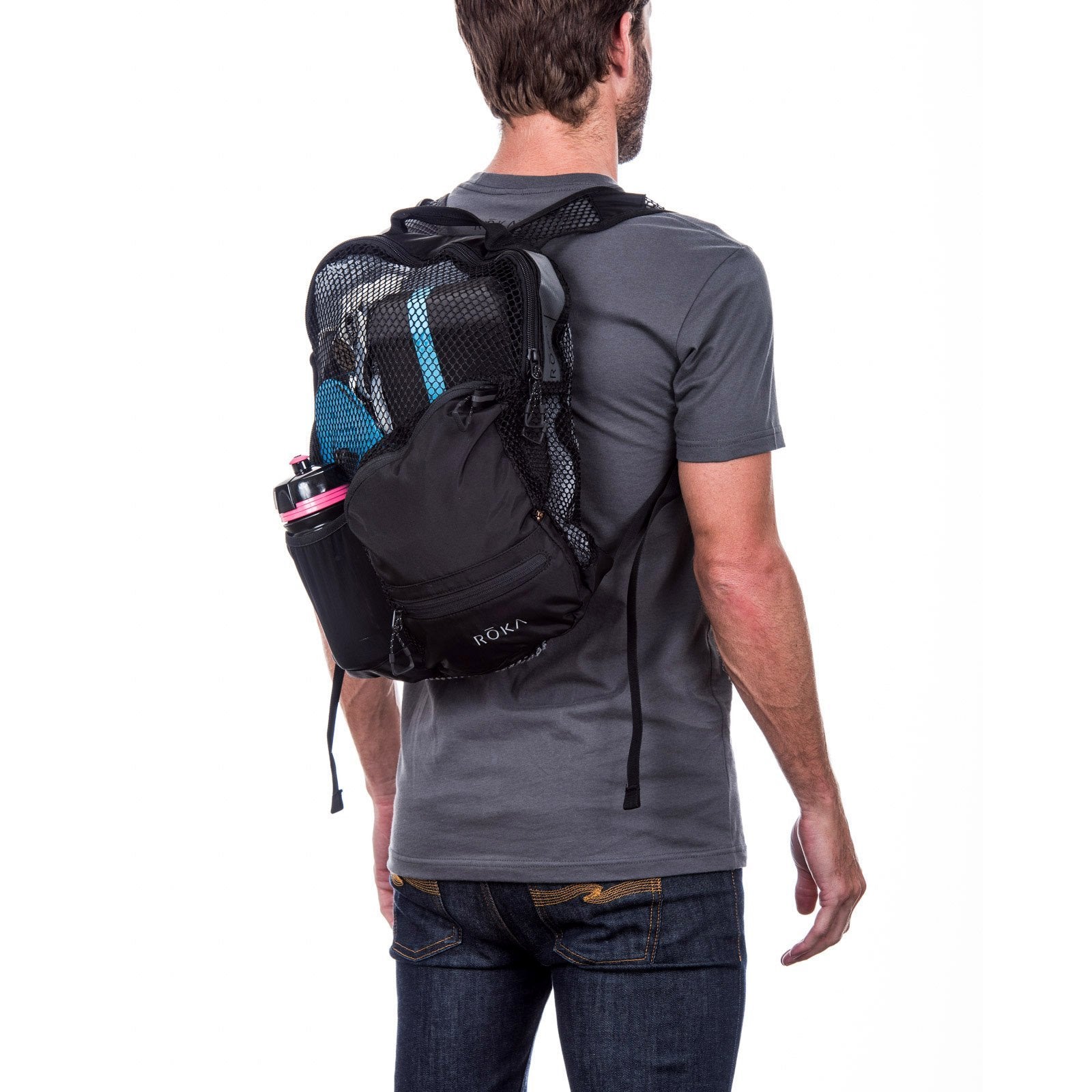 - 4-way stretch mesh water bottle pocket